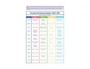 These are the annual calendar with the themes we are planning to release each month for Preschool and Kindergarten. The Preschool themes will each come with a lesson plan ideas sheet.