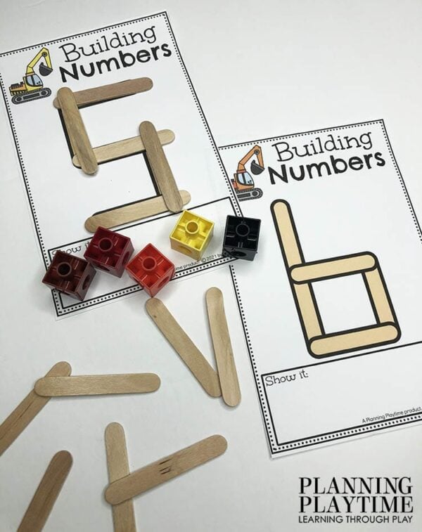 Place mini craft sticks in the formation to make each number. Count out small manipulatives to match the target number.
