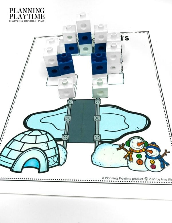 Everyone loves to build a fort, especially a snow fort! Use small blocks and count out the correct number of each to copy the pattern and build your fort.