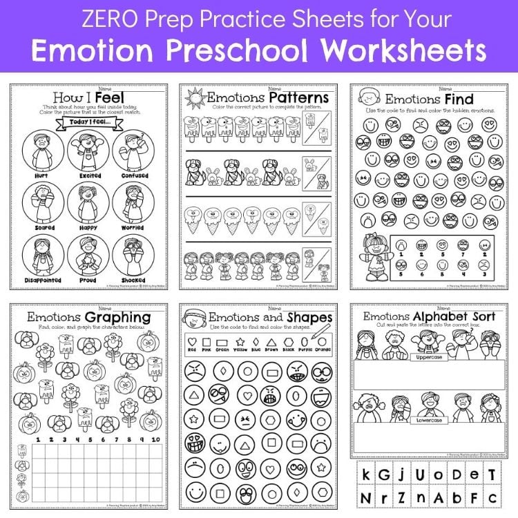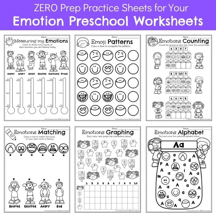 We recommend pairing the no prep worksheets with the low prep Emotions Preschool Activities Binder.