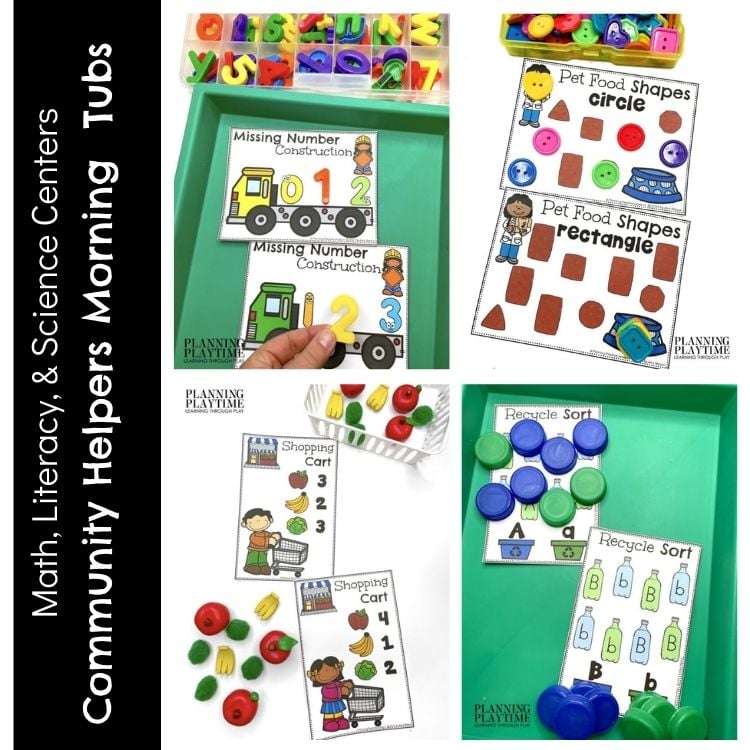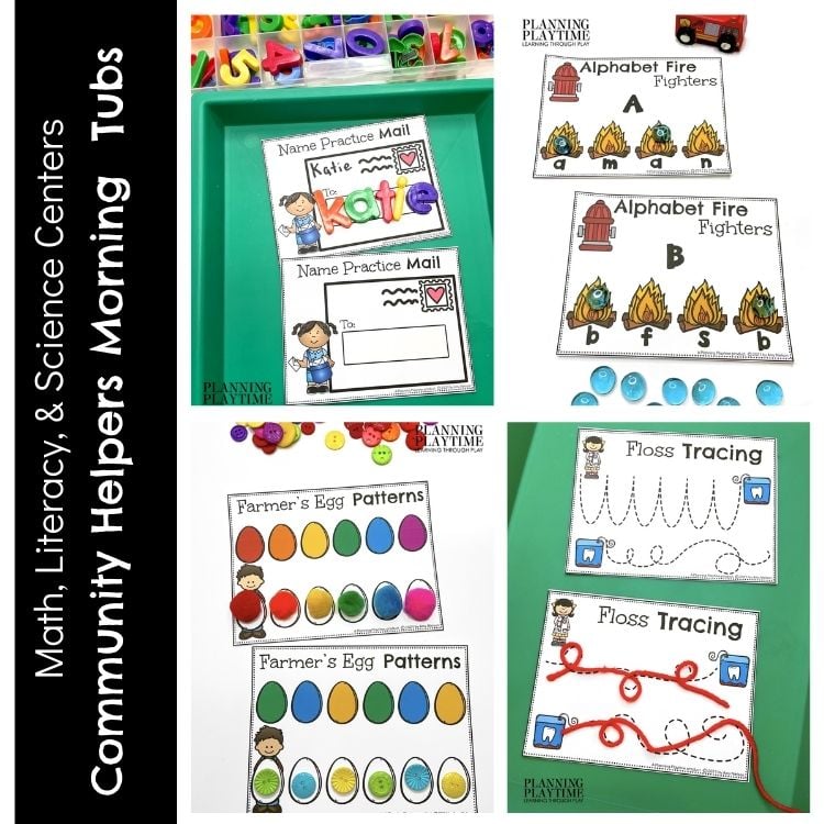 Activities Included in Community Helpers Math and Literacy Morning Tubs: