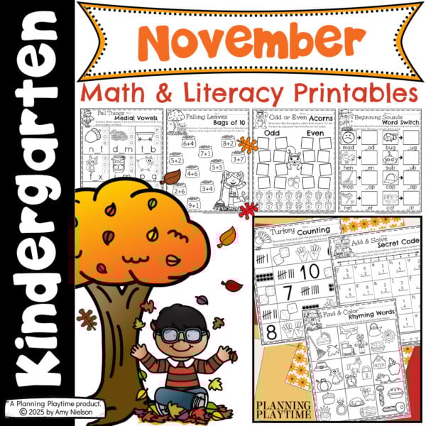 Looking for fun, November Kindergarten Worksheets? These cute fall printables cover counting, addition, subtraction, writing, site words and more.