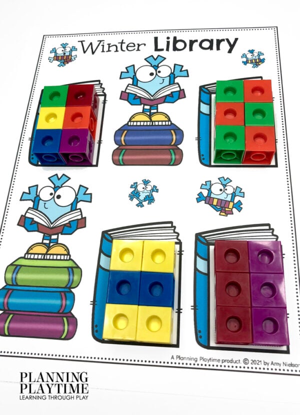 Reading a book is a great activity when it’s too cold outside. This is a fun way to practice making patterns. Use small blocks to copy each book pattern.